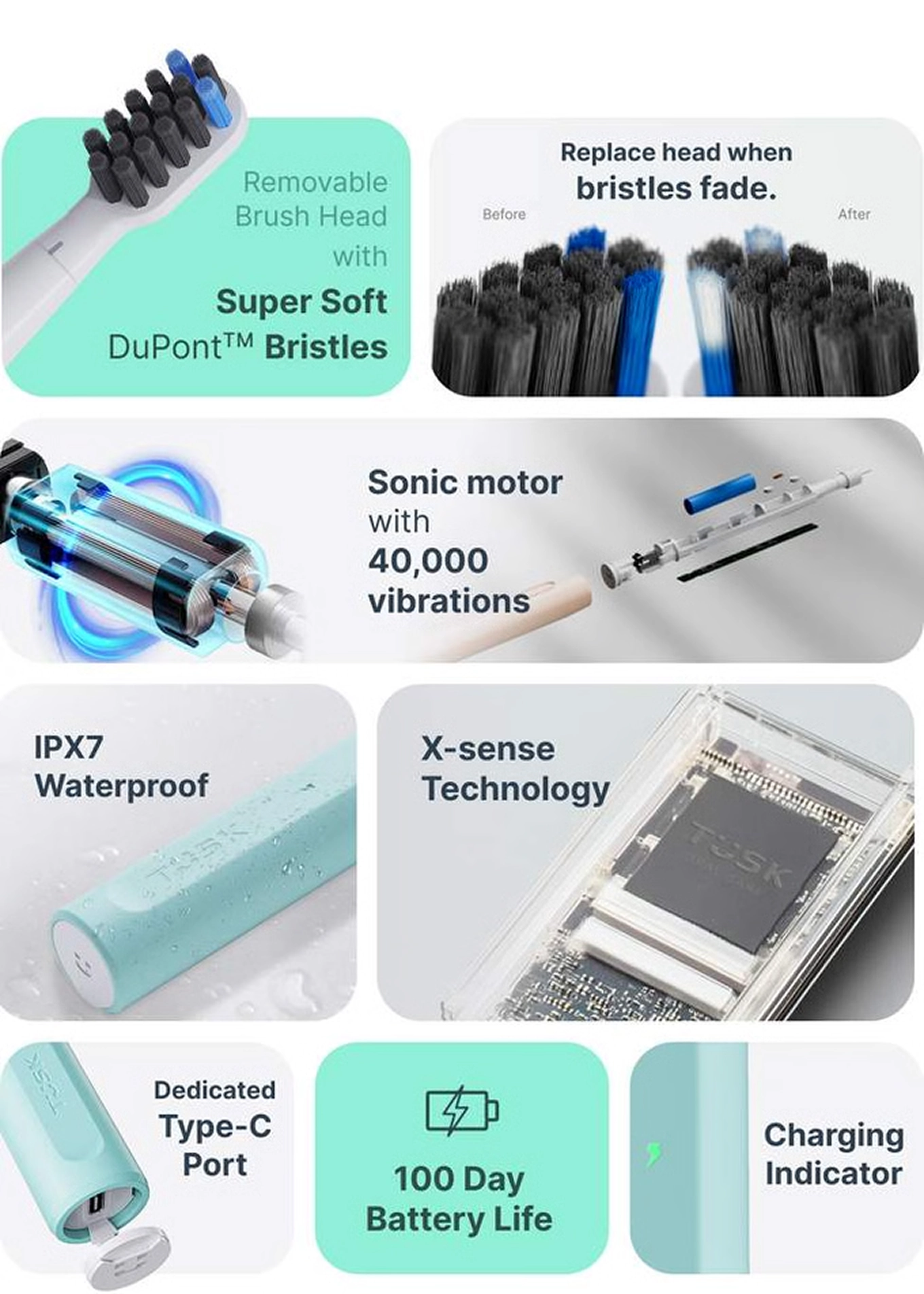 Fully recharges your toothbrush in just 4 hours via USB