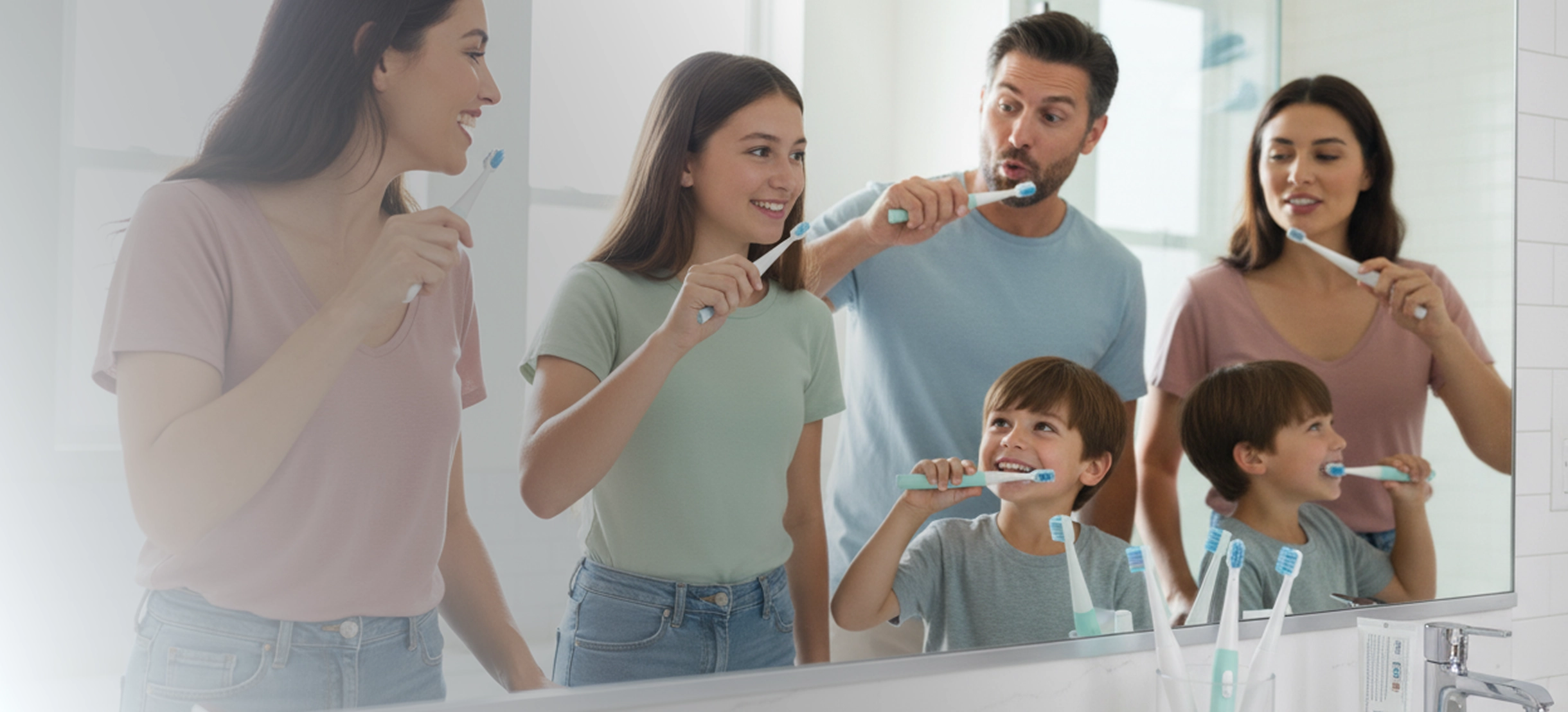 Great habits stick. Attach your toothbrush to the mirror and free up precious sink space.